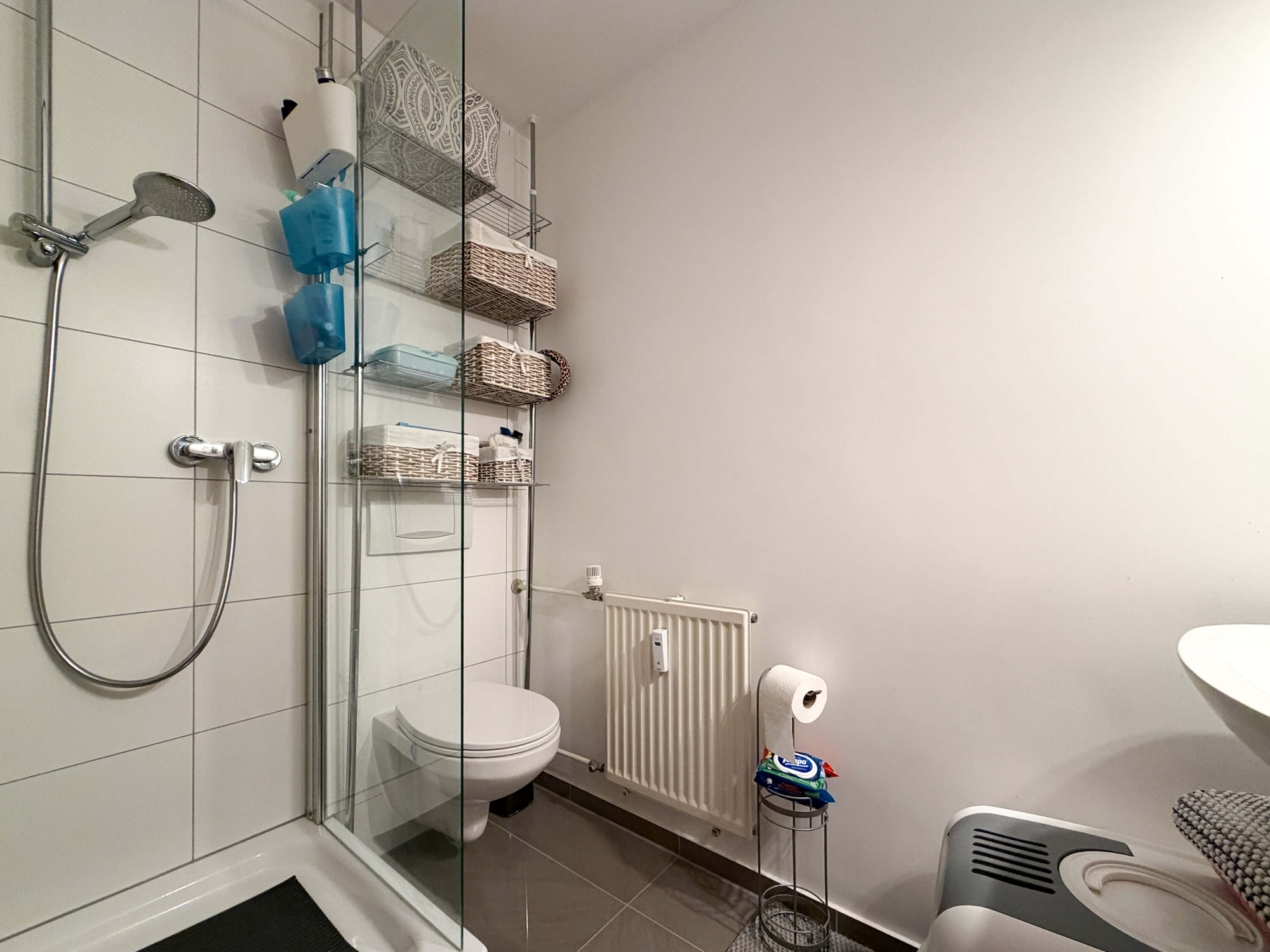 – Badezimmer mit Dusche und Waschmaschinenanschluss