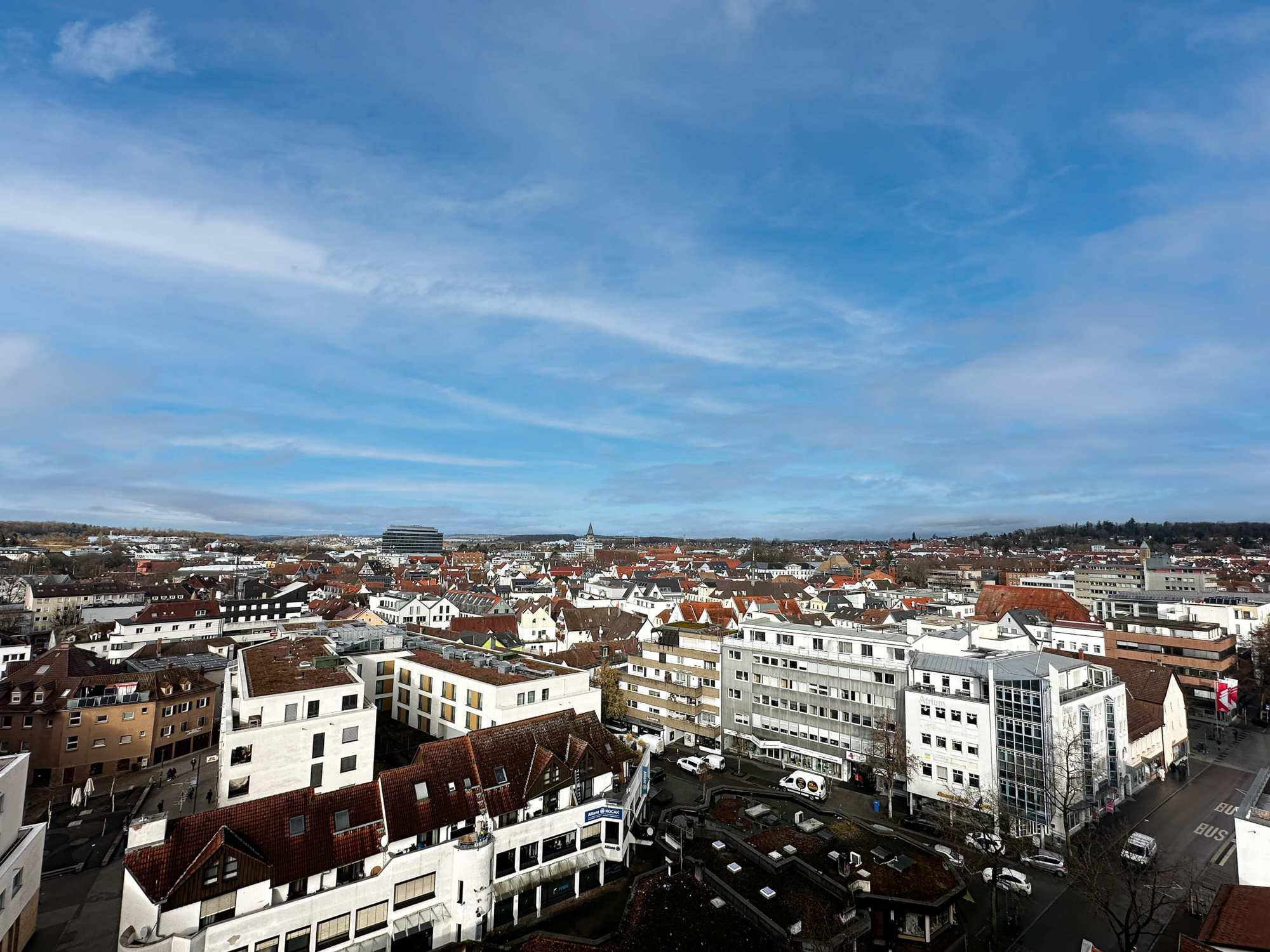 Diese Wohnung befindet sich im 11. OG des „Staufen-Center“ Gebäudekomplex und könnte fast nicht zentraler gelegen sein.