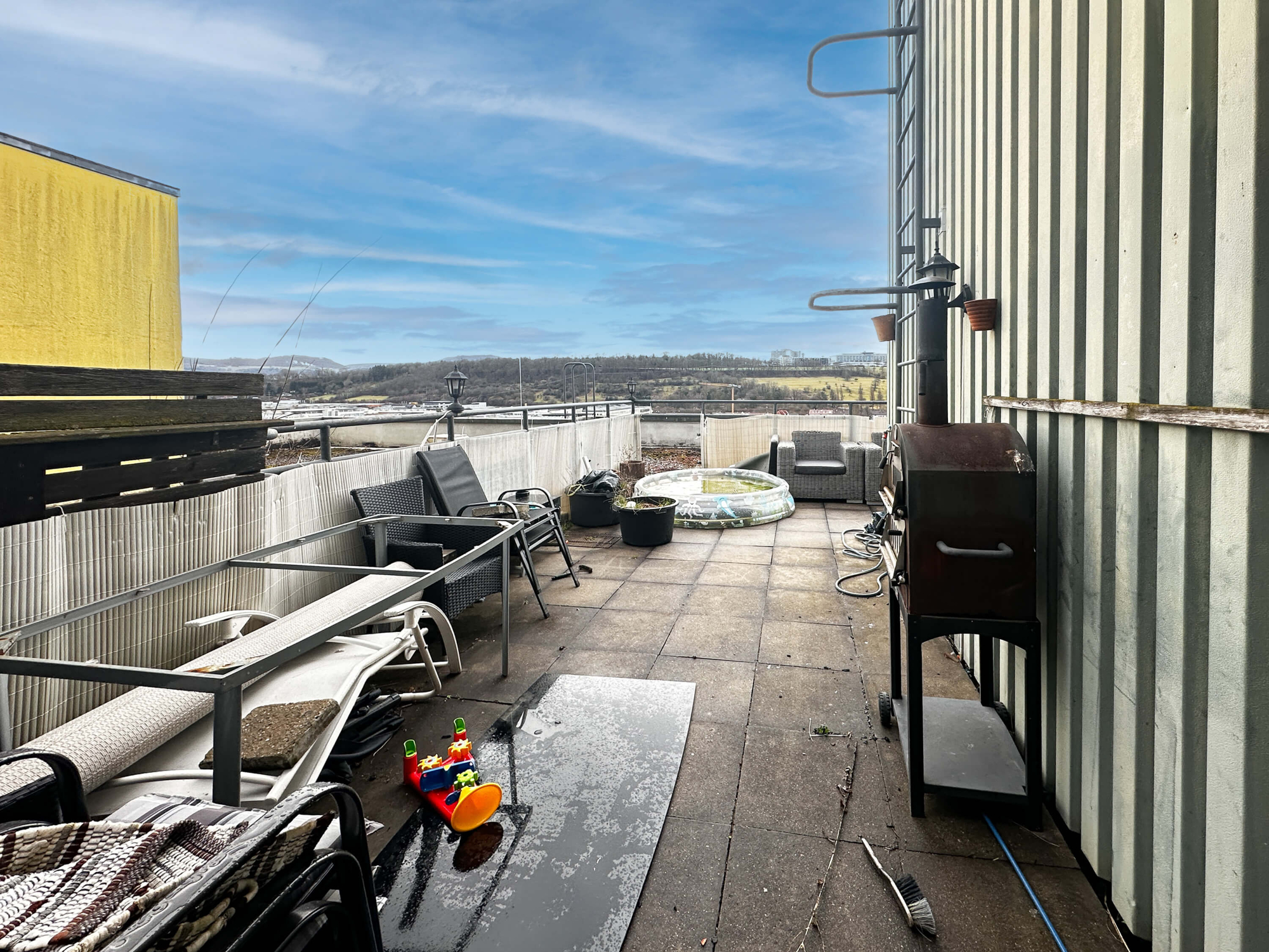 Ein absolutes Highlight ist die großzügige Dachterrasse mit beeindruckender Aus- und Weitsicht sowie ein weiterer Balkon mit Zugang aus dem Wohnzimmer.
