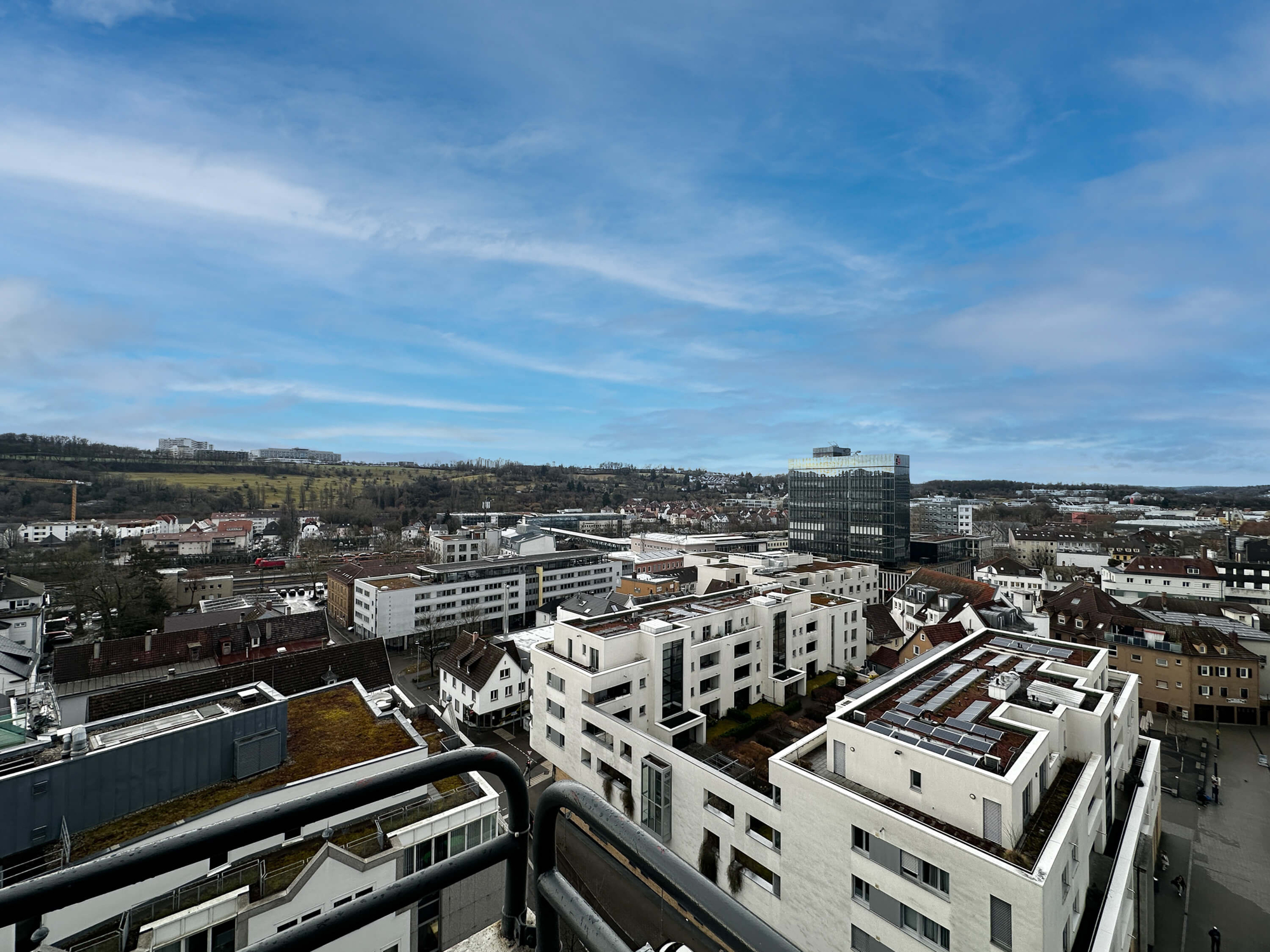 Diese Wohnung befindet sich im 11. OG des „Staufen-Center“ Gebäudekomplex und könnte fast nicht zentraler gelegen sein.