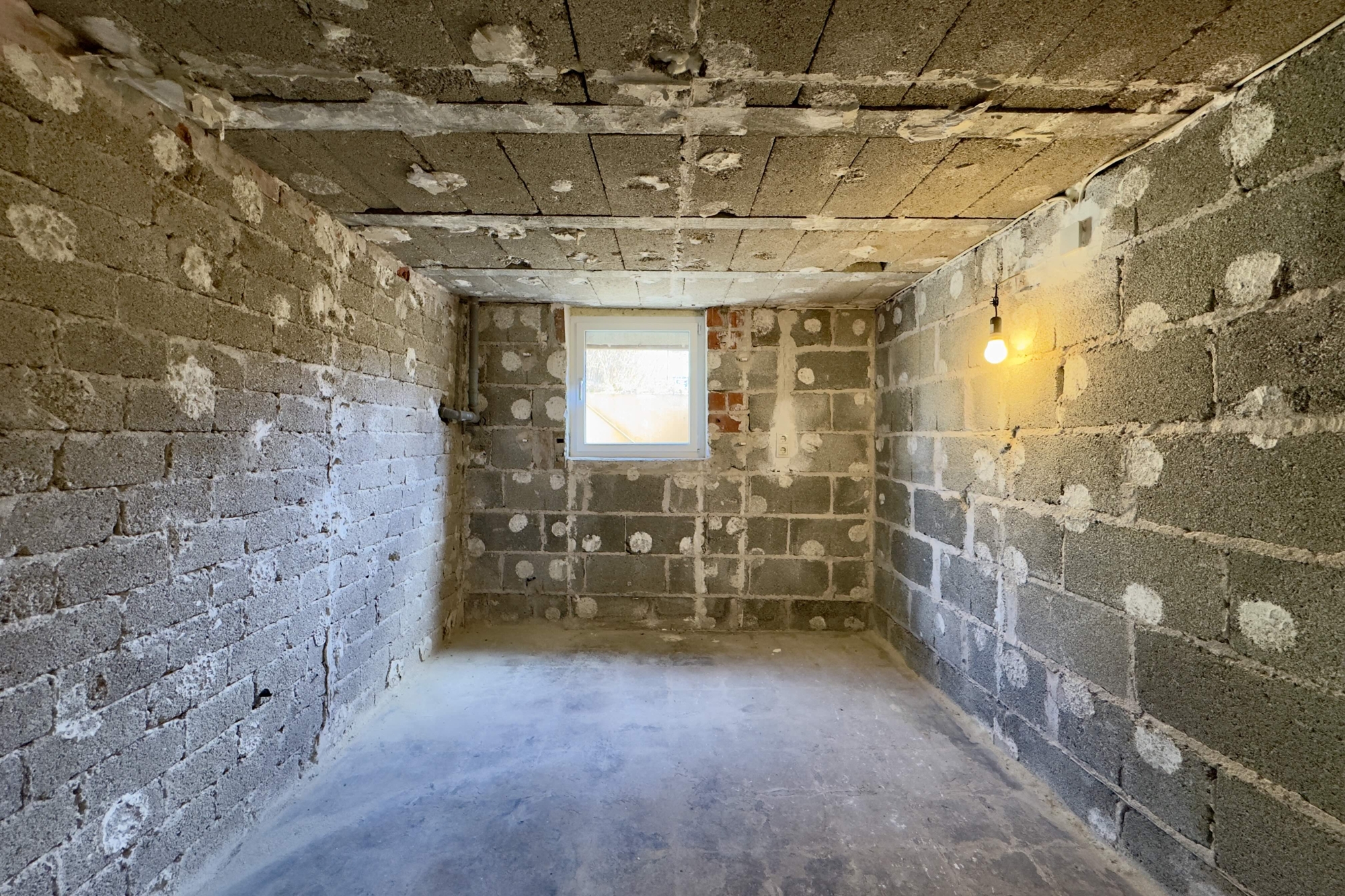 Im Inneren steht ein großzügiger, heller und freundlicher Wohnbereich mit einer modernen voll ausgestatteten Küche samt Elektrogeräten zur Verfügung. Durch die großzügigen Fensterflächen in alle Himmelsrichtungen wirkt die Wohnetage insgesamt sehr lichtdurchflutet und angenehm offen. Von hier aus besteht ein direkter Zugang zu einer kleinen Terrasse sowie in den Garten. Ergänzt wird das Raumangebot durch ein modernisiertes Tageslichtbad mit ebenerdiger Dusche, WC und Waschbecken. Ein zusätzlicher Eingangsbereich schafft praktischen Nutzen im Alltag. Das Haus ist außerdem unterkellert und bietet dort mehrere gut nutzbare Abstell- und Nutzflächen.