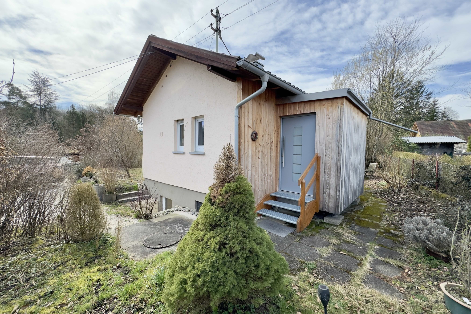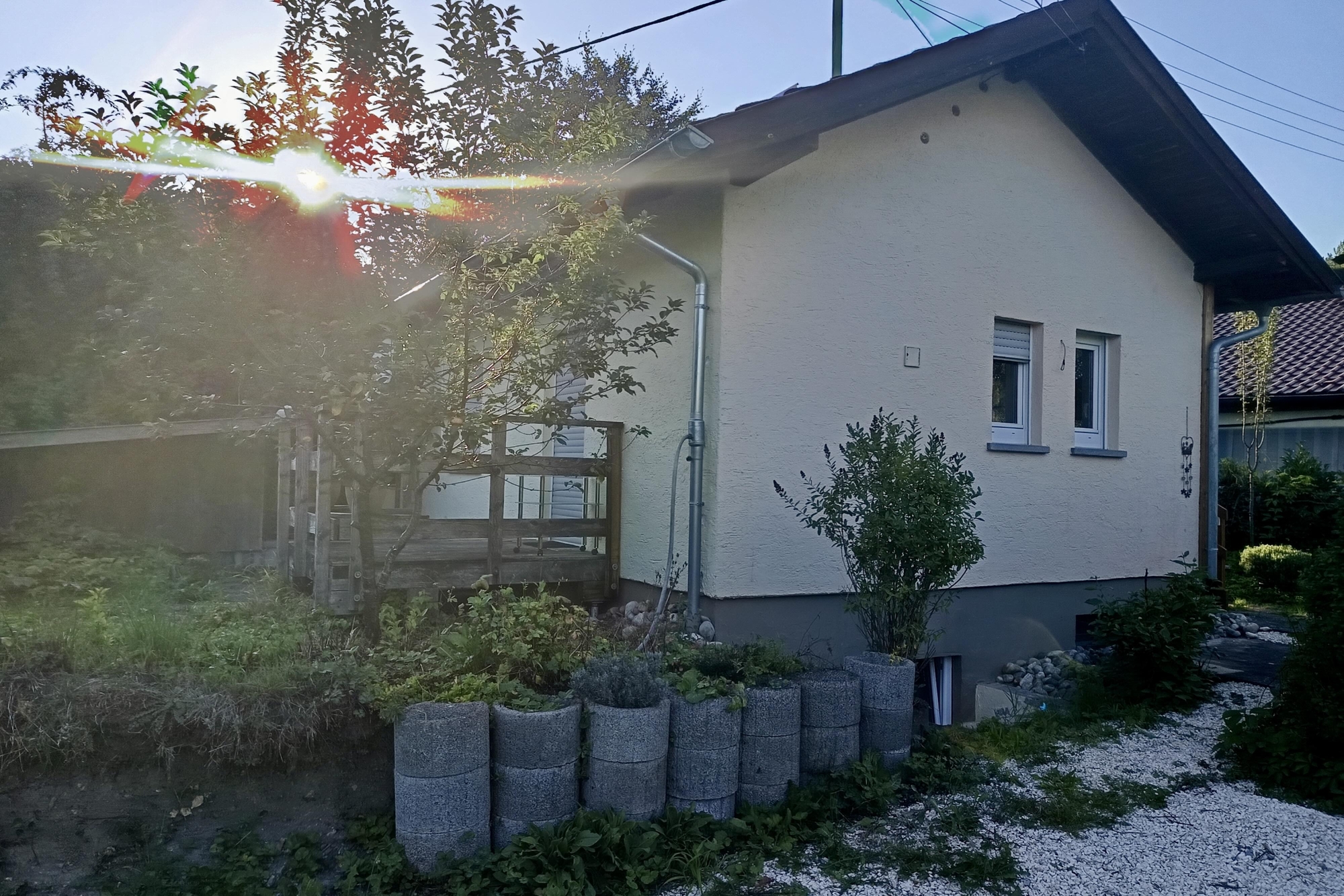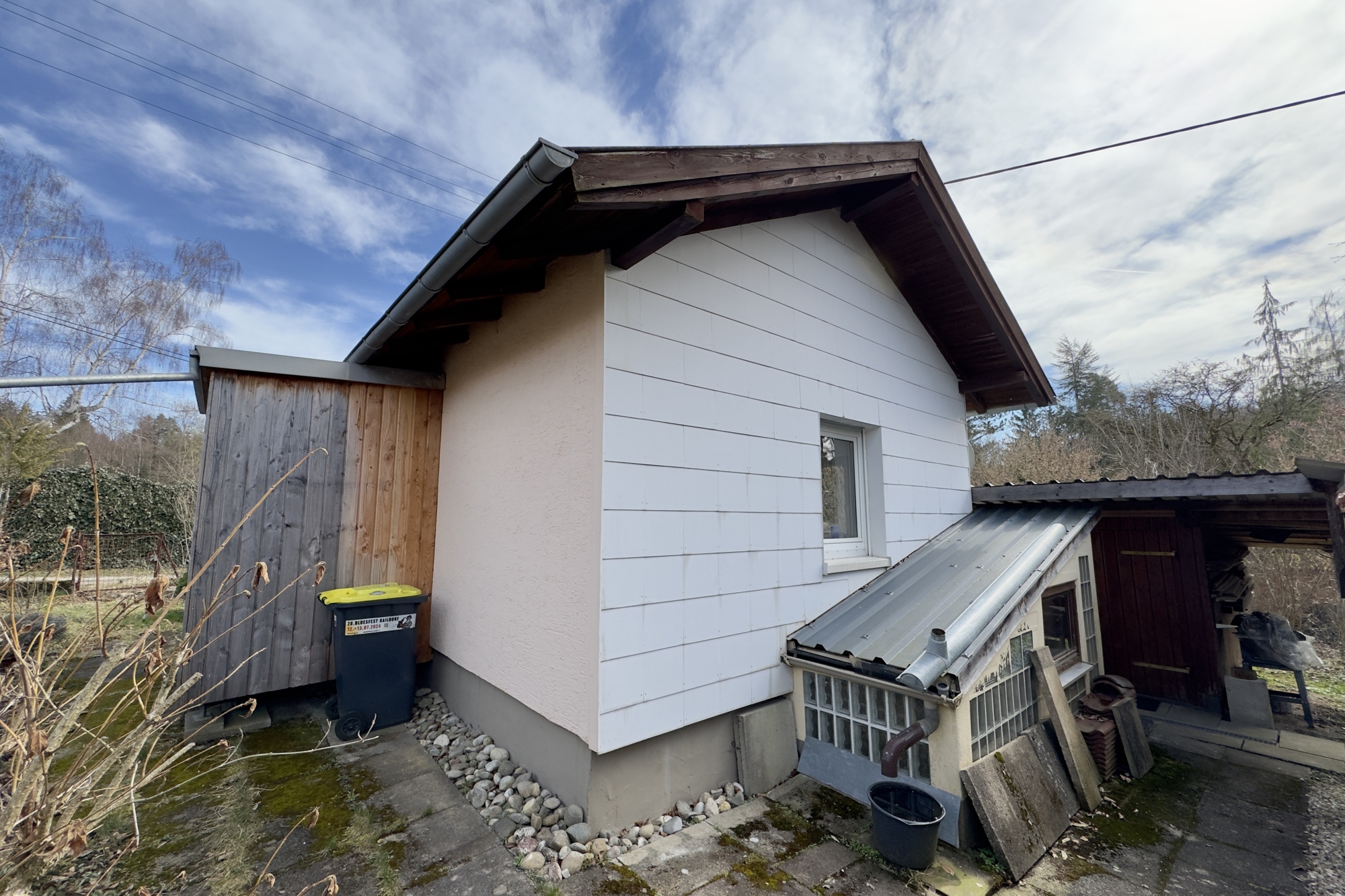 Besonders hervorzuheben ist das große Gartengrundstück mit vielfältigen Nutzungsmöglichkeiten. Der bestehende Baumbestand mit Obstbäumen verleiht dem Außenbereich einen gewachsenen, naturnahen Charakter. Gleichzeitig bietet das Grundstück viel nutzbare Fläche, etwa für Erholung, Freizeit oder auch zum Anlegen eines Nutzgartens. Eine Gartenhütte mit Platz für Gartengeräte und Werkzeuge sowie integrierter Werkbank ist bereits vorhanden. Zusätzlich steht im Garten ein überdachter Unterstand zur Verfügung.