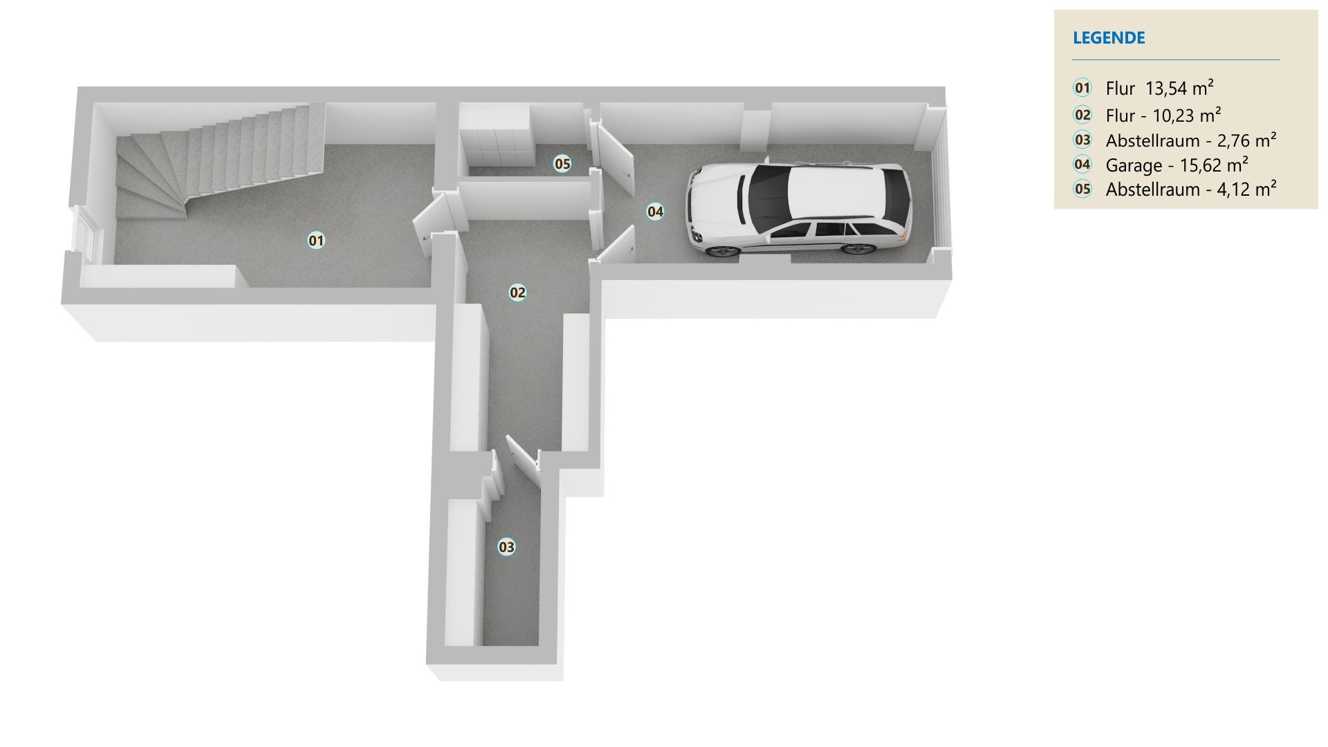 • 4 praktische Kellerräume, teils gefliest; überwiegend Betonboden