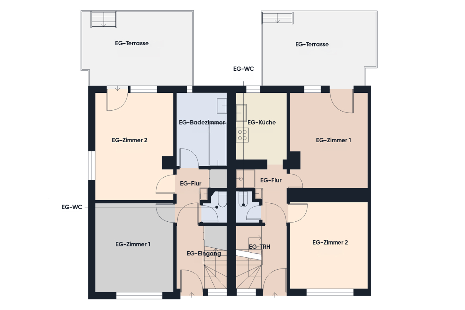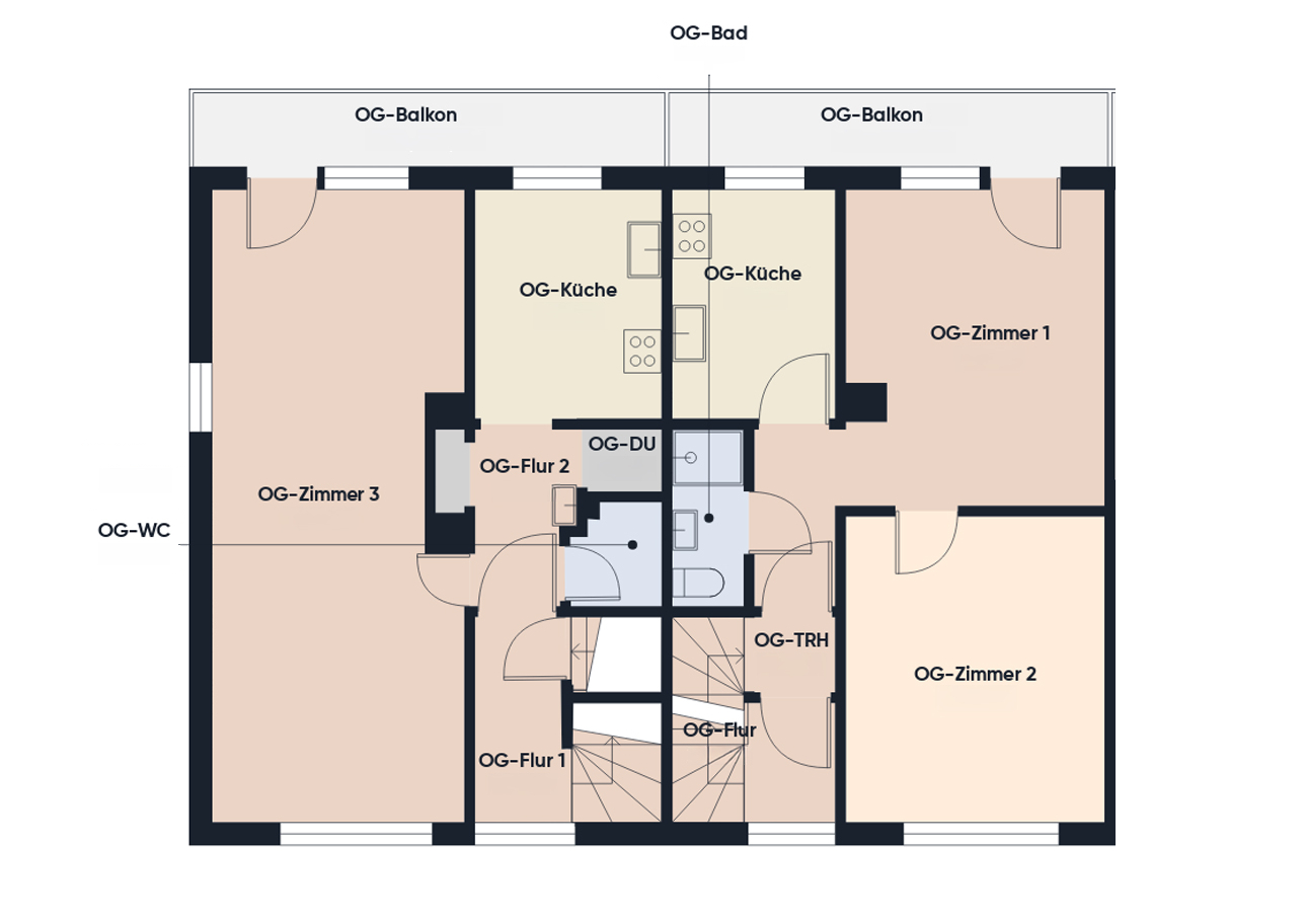 Die linke Gebäudehälfte (Hausnummer 78) ist derzeit als zusammenhängende Einheit mit eigenem Hauseingang ausgeführt und eignet sich somit ideal für eine Eigennutzung. Die rechte Gebäudehälfte umfasst mehrere separate Wohneinheiten und dient der klassischen Vermietung.