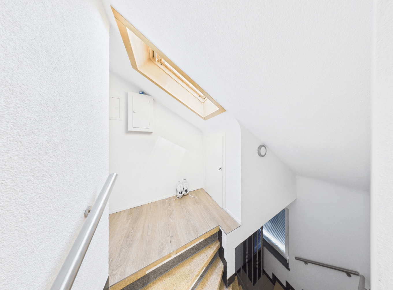 Ursprünglich wurde das Haus 1959 als Kopfhaus in einer Kette von insgesamt drei Gebäuden gebaut und in den letzten Jahren umfassend modernisiert. Unter anderem wurde Vollwärmeschutz aufgebracht sowie Terrassen, Balkone und Außenbereiche einer umfassenden Renovierung unterzogen.