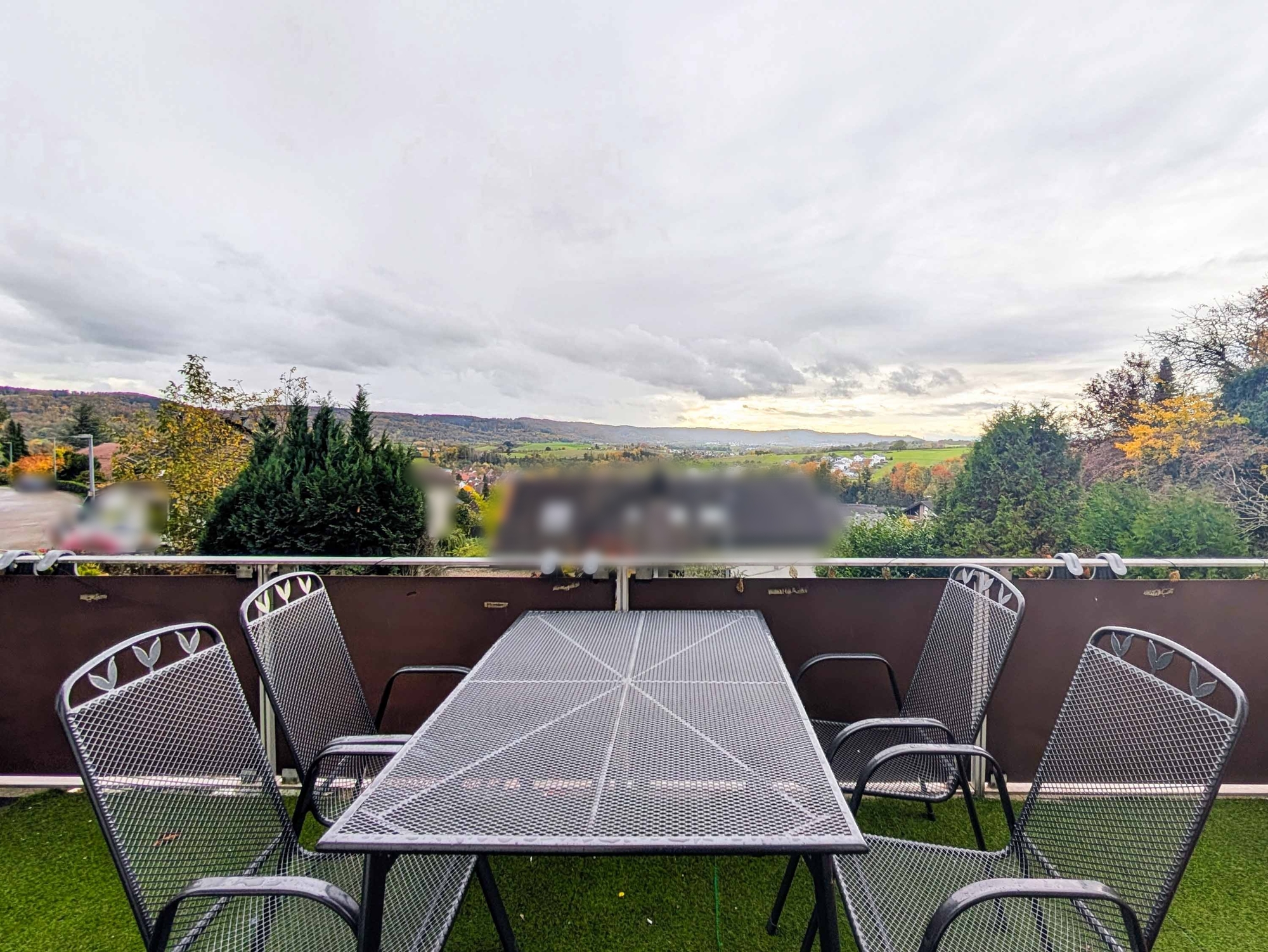 Das Besondere: Vom großzügigen Wohnzimmer aus schweift der Blick durch große Fensterflächen über den sonnigen Süd-West-Balkon hinweg ins grüne Tal. Ein Panorama, das Ihnen täglich die Mittags- und Abendsonne schenkt. Innen überzeugt die durchdachte Raumaufteilung: zwei helle Schlafzimmer, eine separate Küche, ein Bad mit Wanne und Dusche, ein weitläufiger Flurbereich, der mit hochwertigen Steinfliesen gefliest ist und die Wohnung eröffnet, und der in Kombination mit den ebenfalls gefliesten Wohn- und Küchenbereichen für eine sehr alltagstaugliche Gestaltung sorgt, sowie eine praktische Abstellkammer.