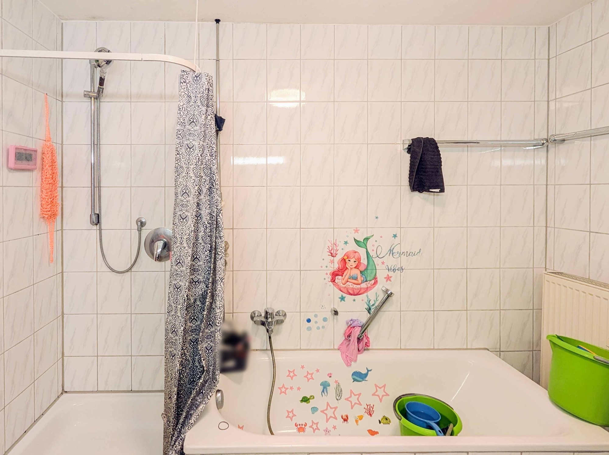 • Badezimmer mit Wanne und Dusche, Belichtung über Lichtschacht