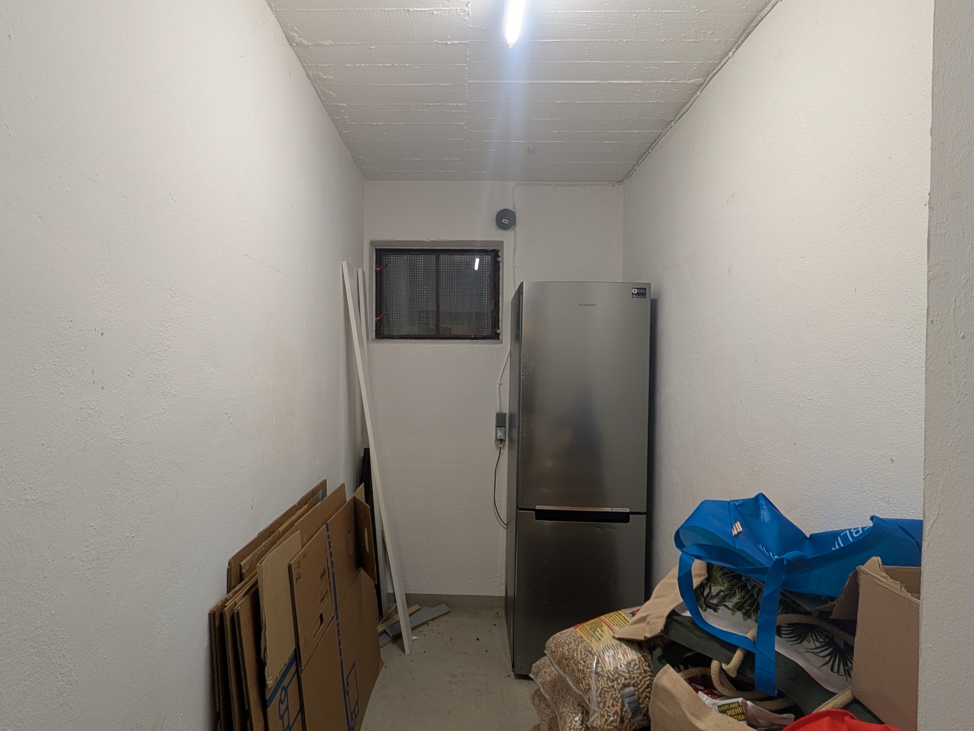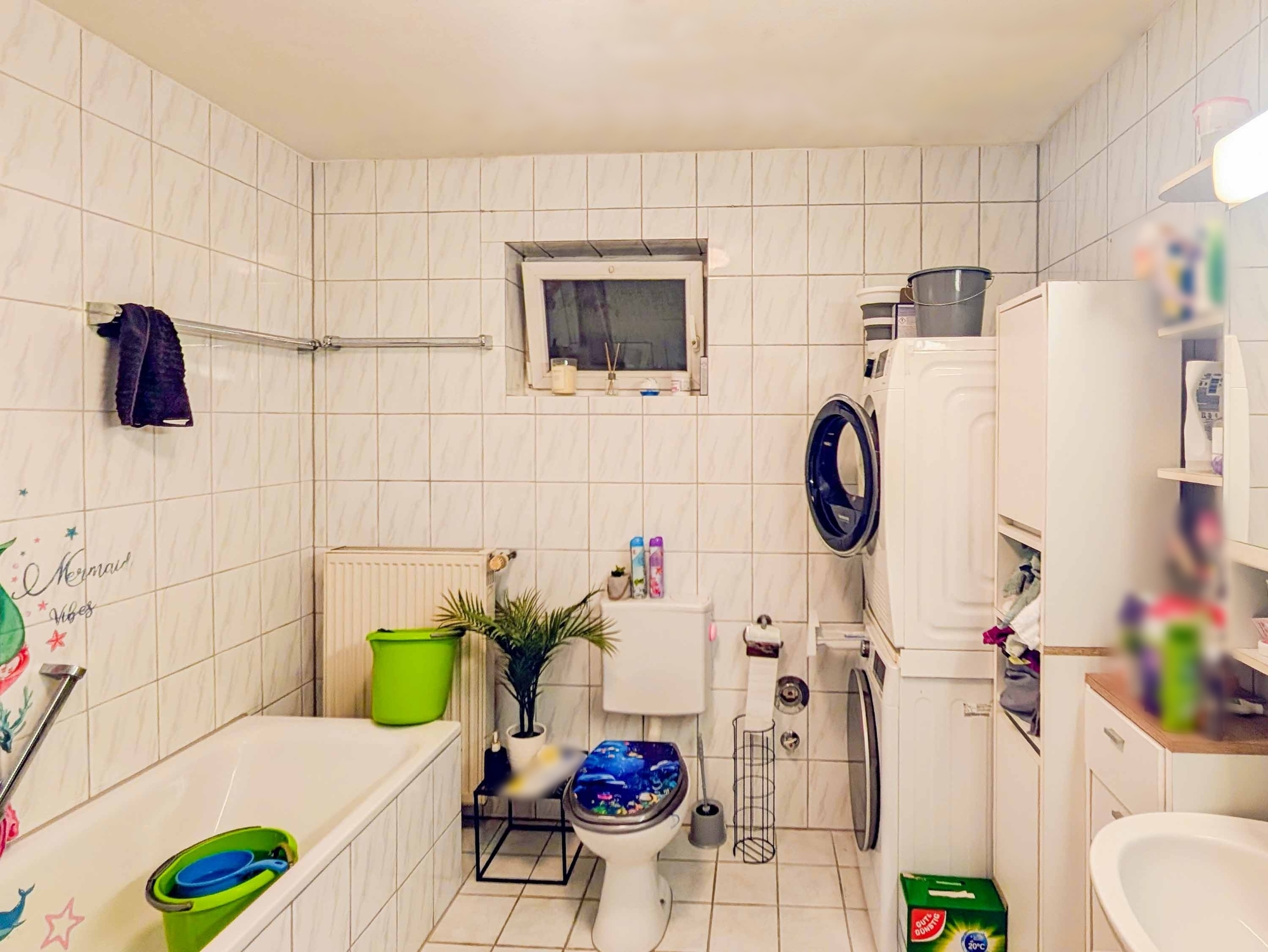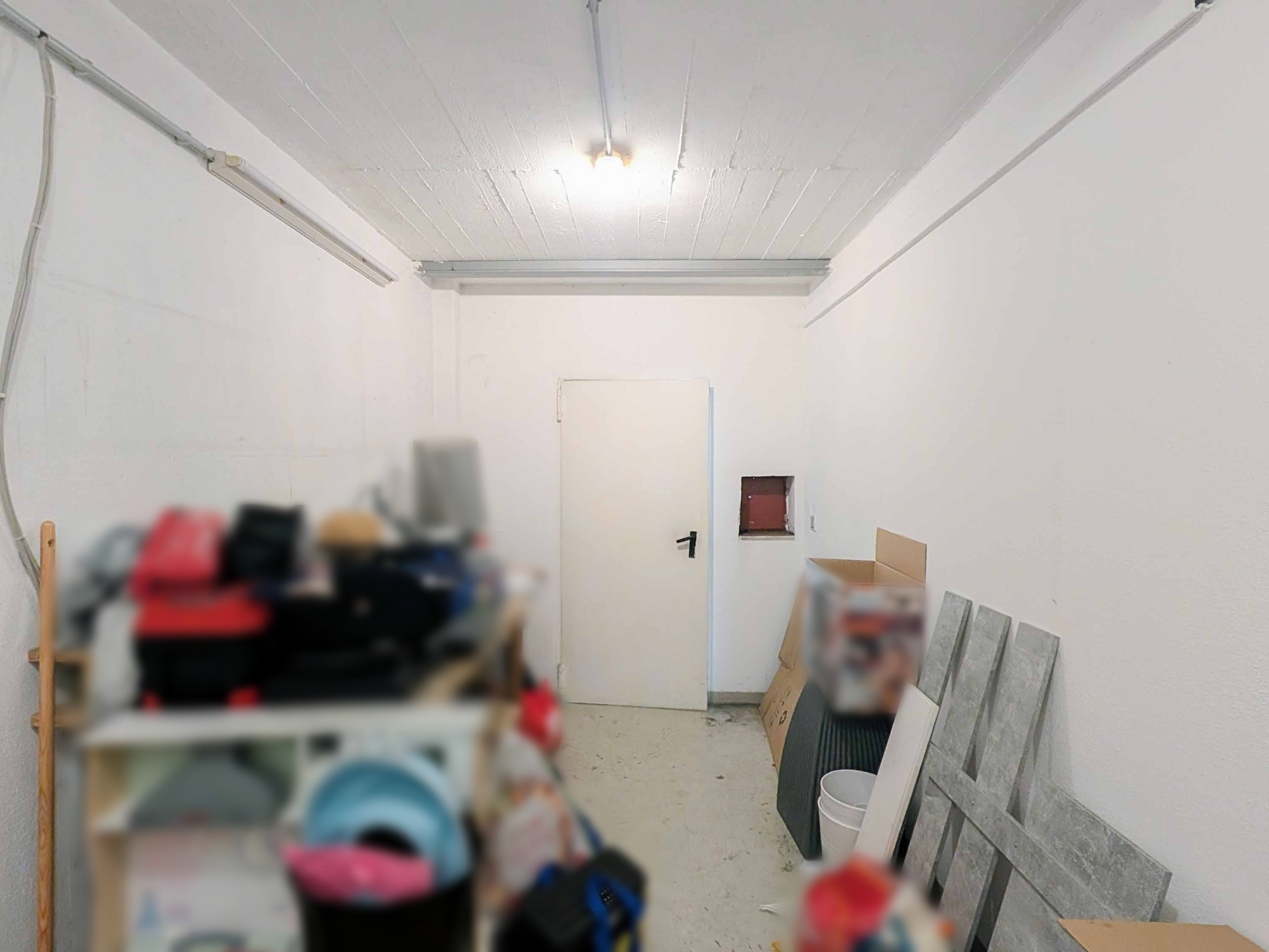 Die Wohnung zeigt sich vorwiegend im Originalzustand. Technisch ist sie solide aufgestellt: Öl-Zentralheizung (1992), doppelt verglaste Kunststofffenster (2002) und ein behaglicher Pelletofen (2018) im Wohnzimmer sorgen für angenehme Wärme. Das innenliegende Bad ist funktional gestaltet und bietet alle Annehmlichkeiten für den Alltag. Das Wohnzimmer ist hell und freundlich durch die Balkontür und einem großen Fester. Von hier aus gelangen Sie direkt auf den sonnigen Balkon. Ein wunderbarer Ort, um den Tag entspannt ausklingen zu lassen und den Blick ins Grüne zu genießen. Diese Verbindung von Wohnraum und Außenbereich schafft eine einladende Atmosphäre voller Licht und Lebensqualität. Im Untergeschoss warten vier Abstellräume mit teils gefliesten Böden. Ideal für Vorräte, Hobbyecken oder als Ordnungshüter im lebendigen Familienalltag.