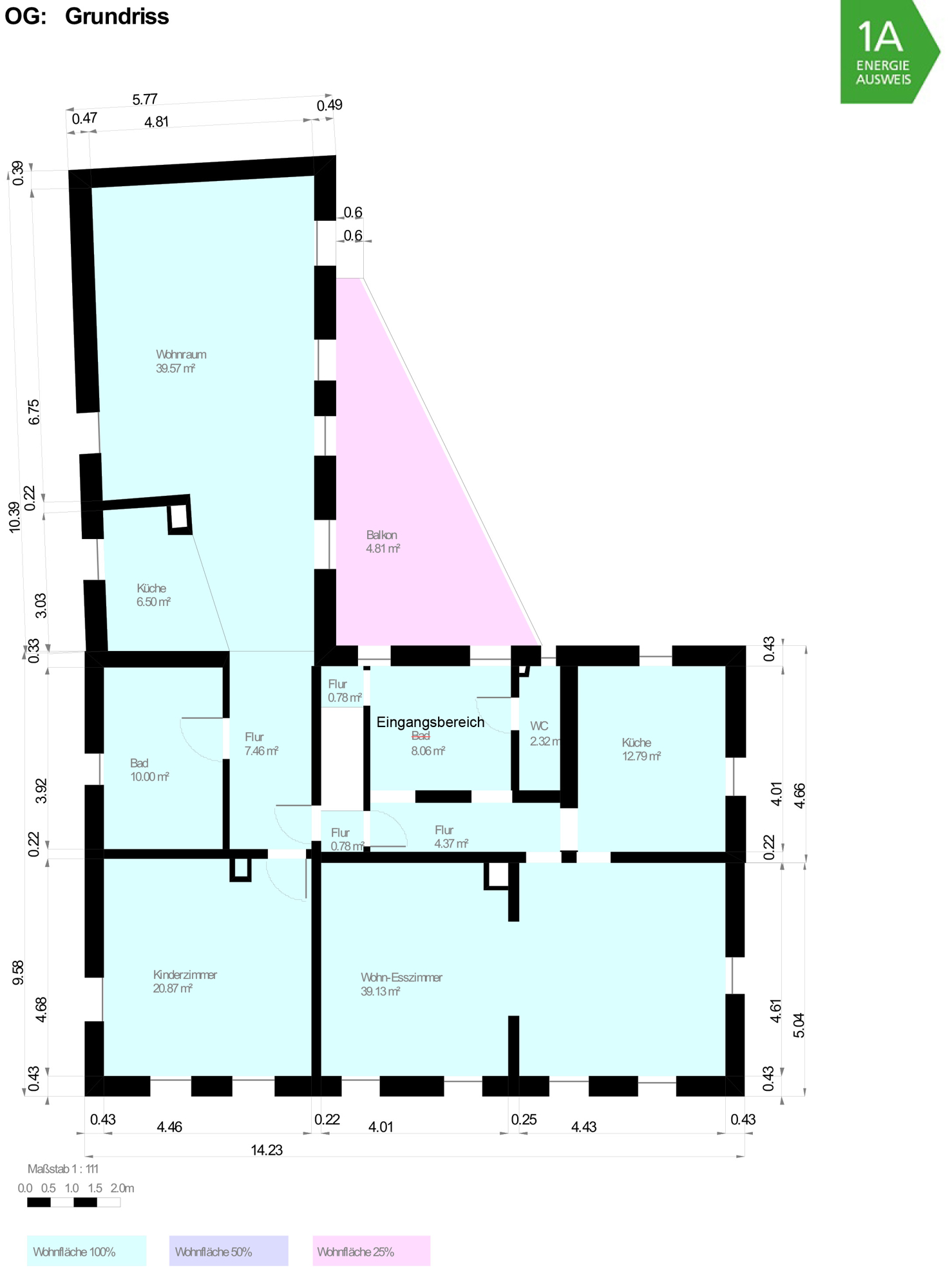 – Endenergieverbrauch: 46,3 kWh/(m²·a)